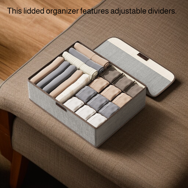 ● Keep your drawers neat and tidy with this lidded organizer featuring adjustable dividers, perfect for customizing storage to fit your needs.